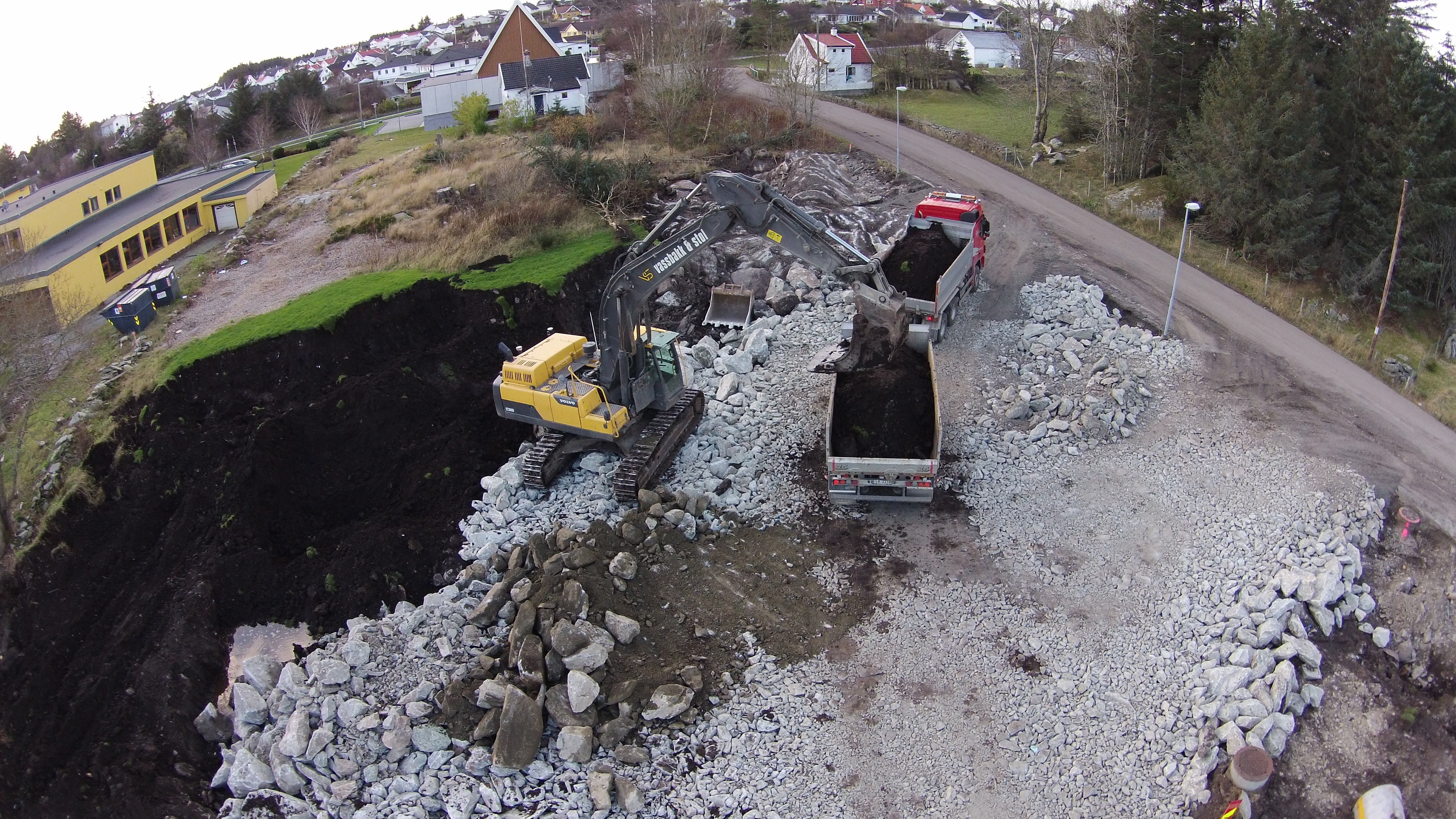 Vassbakk & Stol er nå i gang med grunnarbeidene til en ny hall for kunstgressbane.