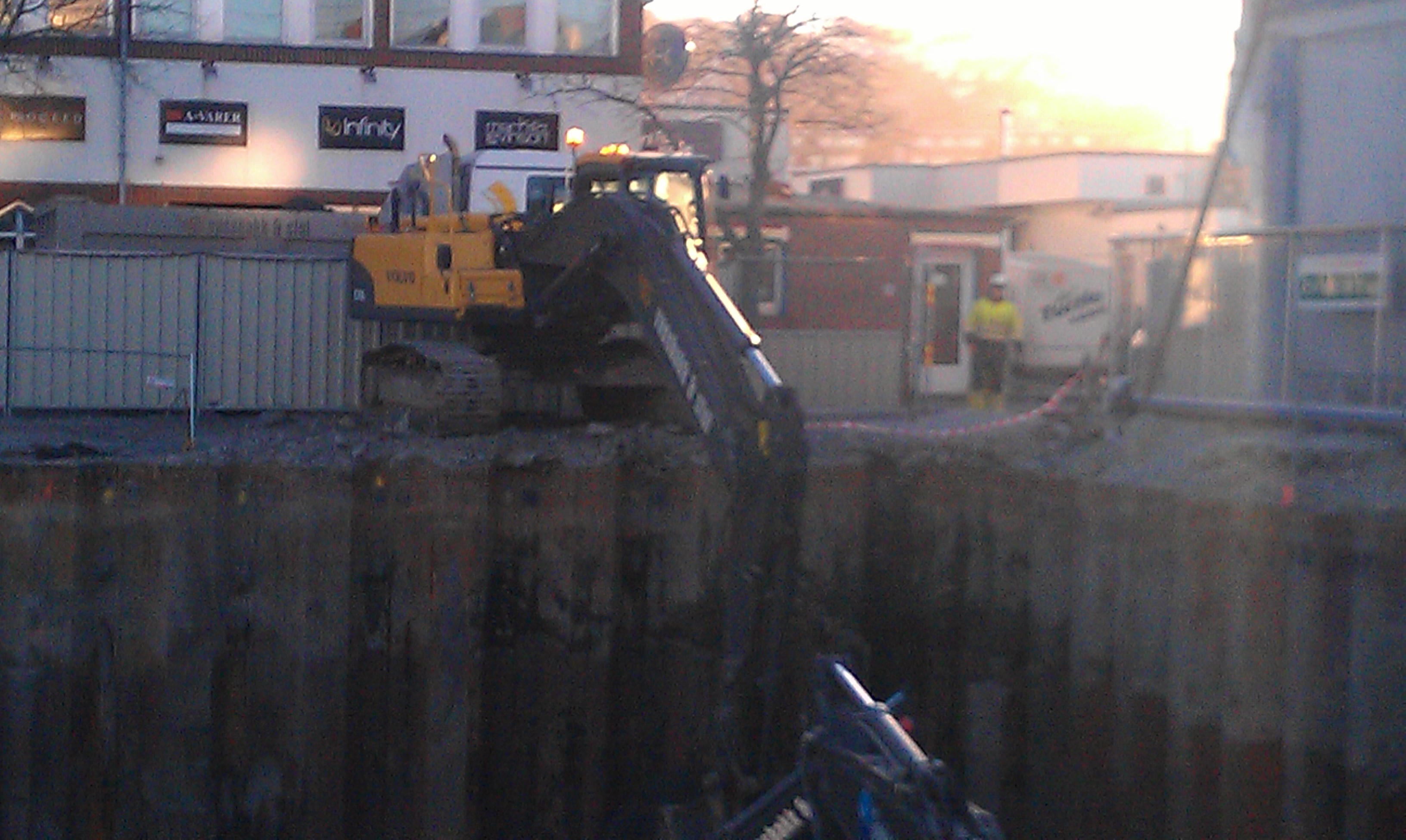 Arbeidene er i tilknytning til at det skal bygges et parkeringsanlegg i 2 etg. 5 meter under havet, i tillegg til kjøpesenter med 50 – 60 butikker og 131 leiligheter på toppen.